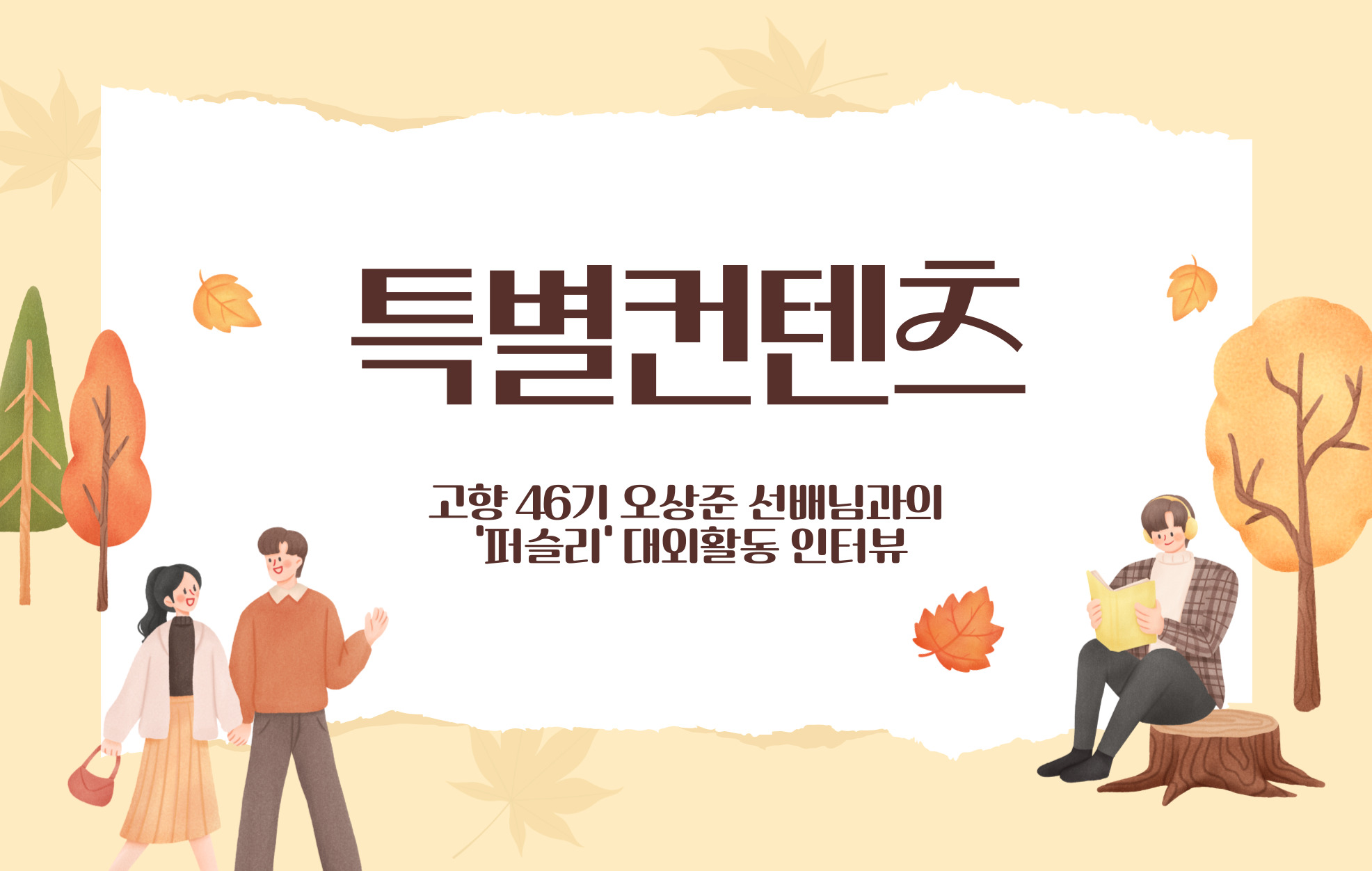 지난 7월 16일, 향영총동문회 밴드에 ‘퍼슬리’를 알리는 오상준 선배님의 글이 올라왔습니다. 곧이어 2학기 개강총회에서는 62기 대상 SNS 마케팅 대외활동 모집 소식이 이어졌습니다. 더 많은 이들에게 퍼슬리를 알리기 위해 62기들과 함께 방법을 모색하겠다는 제안이었습니다. 이에 기자단은 퍼슬리를 이끄는 오상준(고려향영 46기) 선배님을 만나, 퍼슬리가 실제로 제공하는 도움은 무엇인지, 5~6년 내 도래할 ‘1인 1 주치의’ 시대를 어떻게 준비하는지, 그리고 진로를 고민하는 후배들에게 전하고 싶은 현실적인 조언은 무엇인지 들어보았습니다.