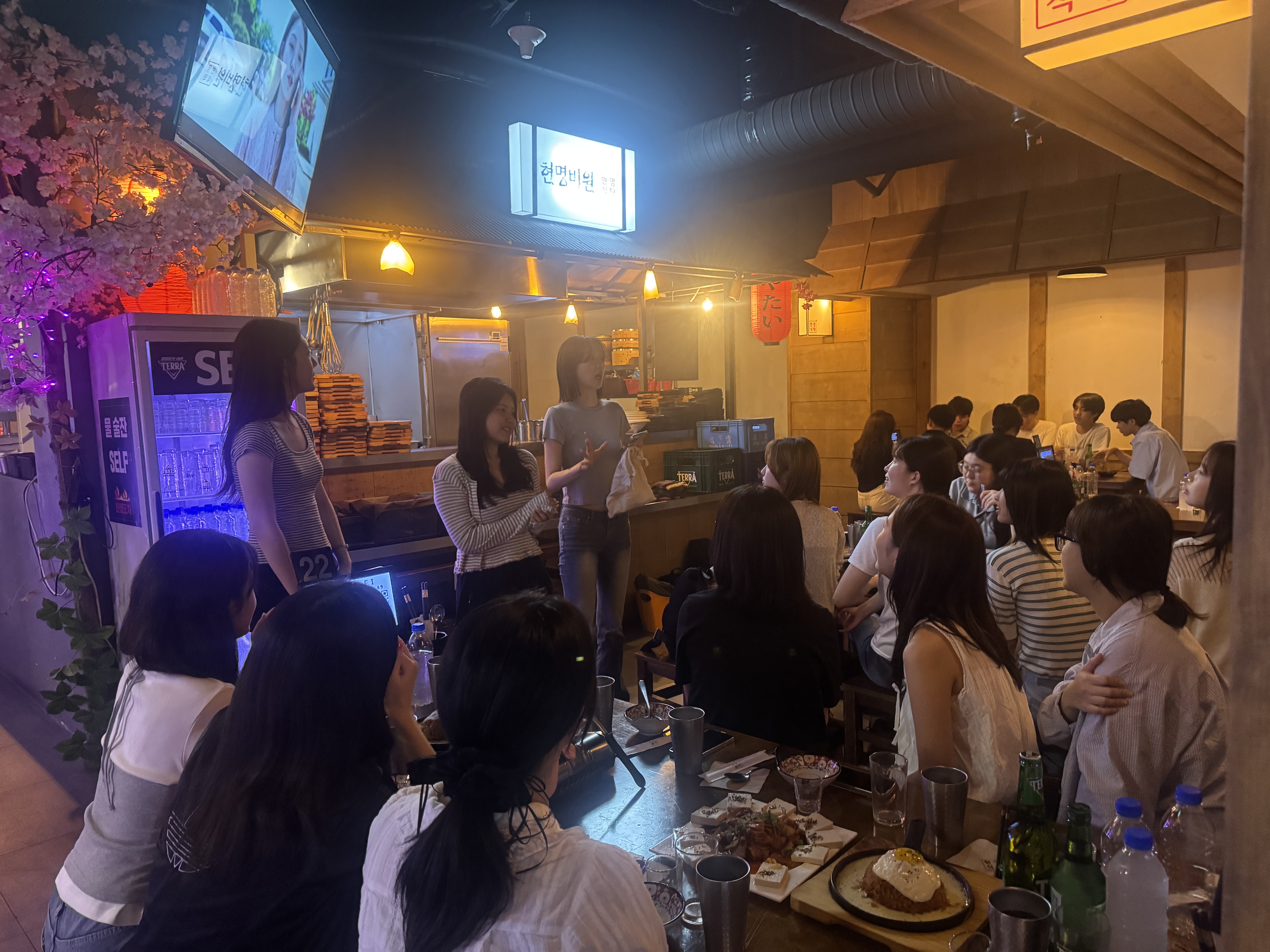 안녕하세요! 향영 기자단 이향 62기 박주은입니다. 지난 9월 4일 목요일, 19시에 신촌 현명포차에서 이화향영 2학기 개강 총회가 열렸습니다. 이번 자리에서 60기, 61기 2학기 임원진과 62기가 처음으로 만났습니다. 처음엔 약간의 어색함과 반가움이 공존했지만, 곧 자기소개와 아이스브레이킹 시간을 통해 서서히 친해졌습니다. |