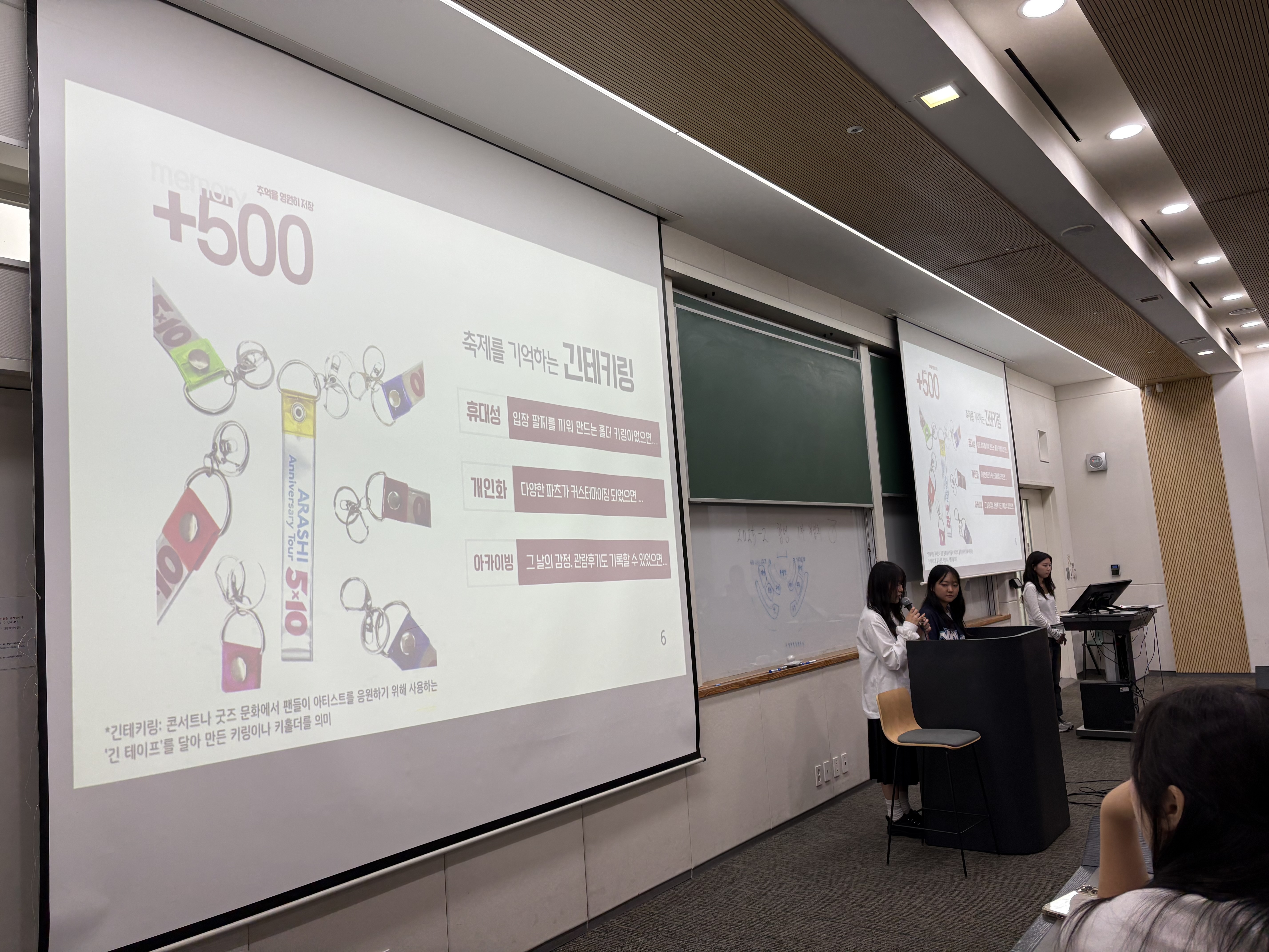 츄키조는 마케팅, 총무, 기획, 콘텐츠 네 팀으로 역할을 나누어 체계적인 운영 방안을 제시했습니다. 특히 타깃층인 20대 대학생의 숫자를 언급하며 “이렇게 많은 사람들이 우리의 고객이 될 수 있다”는 점을 강조했습니다. 또한 20대의 개성 추구 트렌드에 맞춰, 입장 팔찌를 넣을 수 있는 키링과 그날의 기억을 남길 수 있는 일기 양식, 꾸미기 파츠까지 더한 알찬 구성을 소개했습니다.