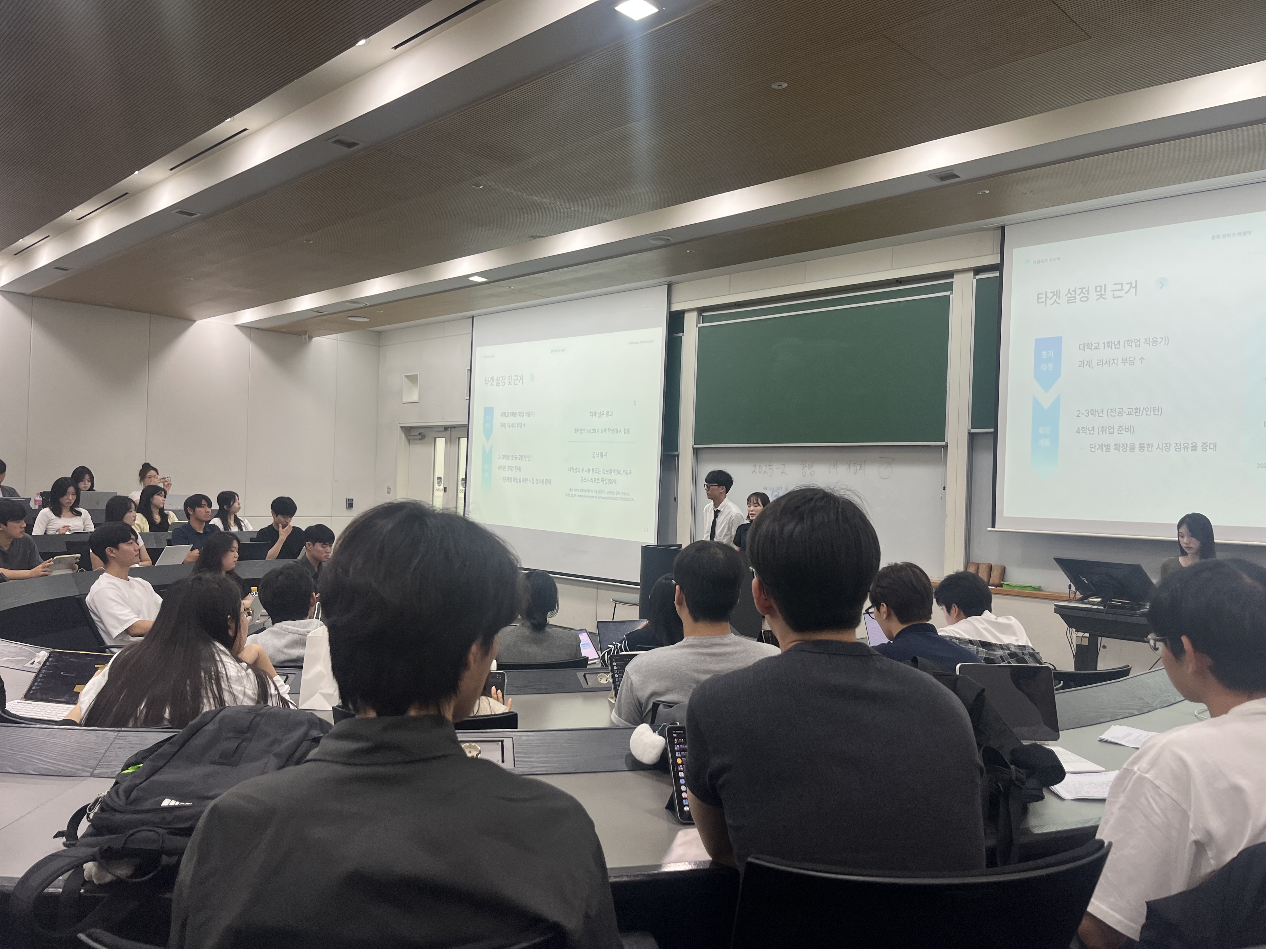 덕분에 발표를 듣는 내내 “출시되면 바로 써보고 싶다!”라는 생각이 저절로 들 정도였는데요. 특히 고정비용뿐만 아니라 손익분기점까지 명확히 제시하며 BMC 틀 안에서 구체적인 시뮬레이션을 보여준 점이 돋보였습니다. 여기에 런칭과 테스트, 분석을 포함한 4주 실행 타임라인과 리스크 대응 전략까지 마련해 다음, 다다음 부집회에서의 활약이 더욱 기대되는 조였답니다!