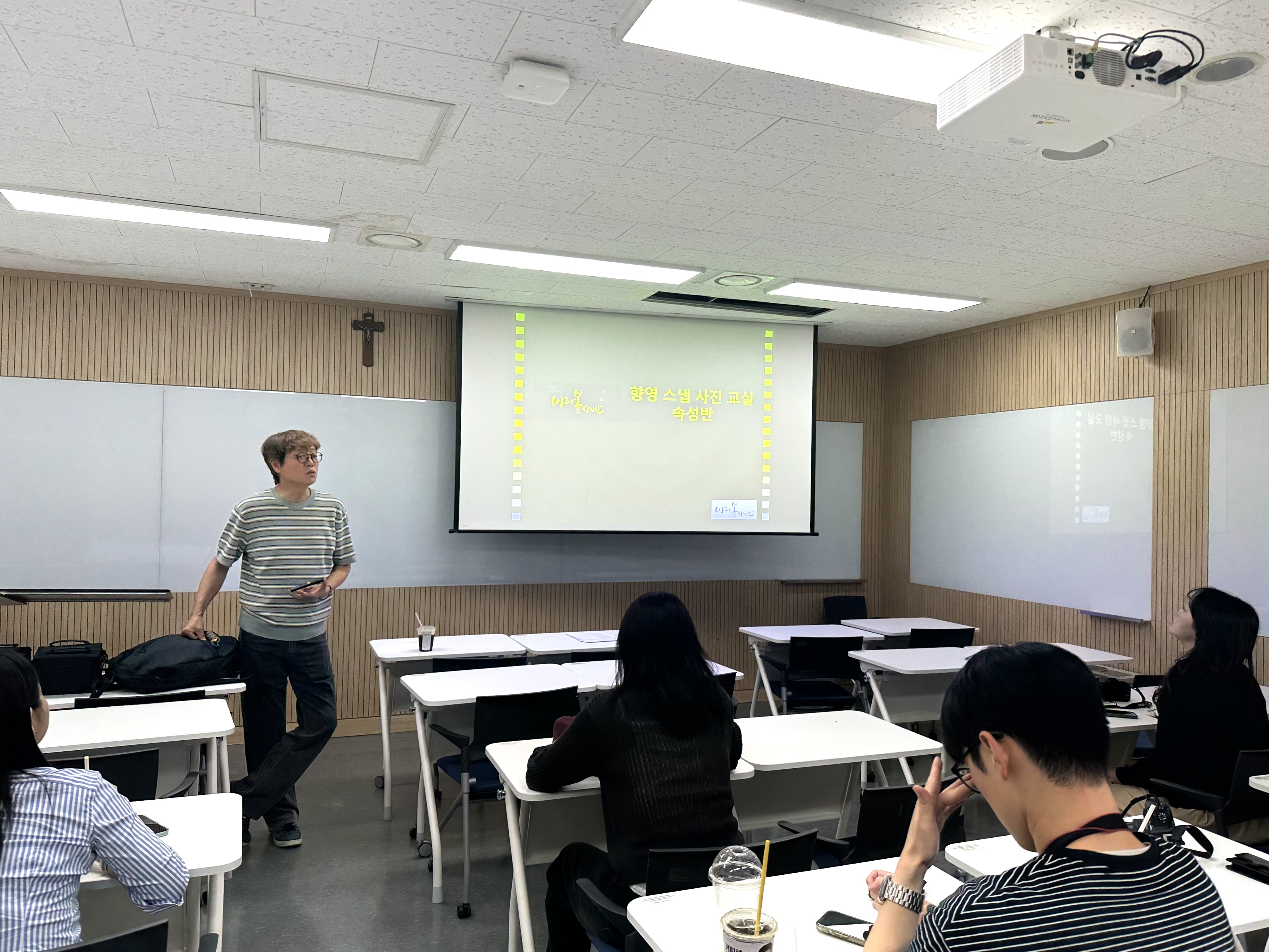 9월 27일, 향영스냅에서 사진 촬영 교육 프로그램이 진행되었습니다. 사전 신청을 통해 사진촬영과 포토샵 기초에 관심있는 향영인들이 참여했습니다. 서강대학교 정하상관에서 진행된 이번 교육에서는 수동 카메라의 전반적인 기능을 배우고 실습해보는 시간을 가졌습니다. 셔터 속도, 조리개 조절, 구도 설정과 같이 카메라의 다양한 기능을 이해하고 직접 조정해보는 경험을 통해 자동으로 설정된 카메라로는 발견하지 못했던 매력을 발견할 수 있었던 시간이었습니다. |