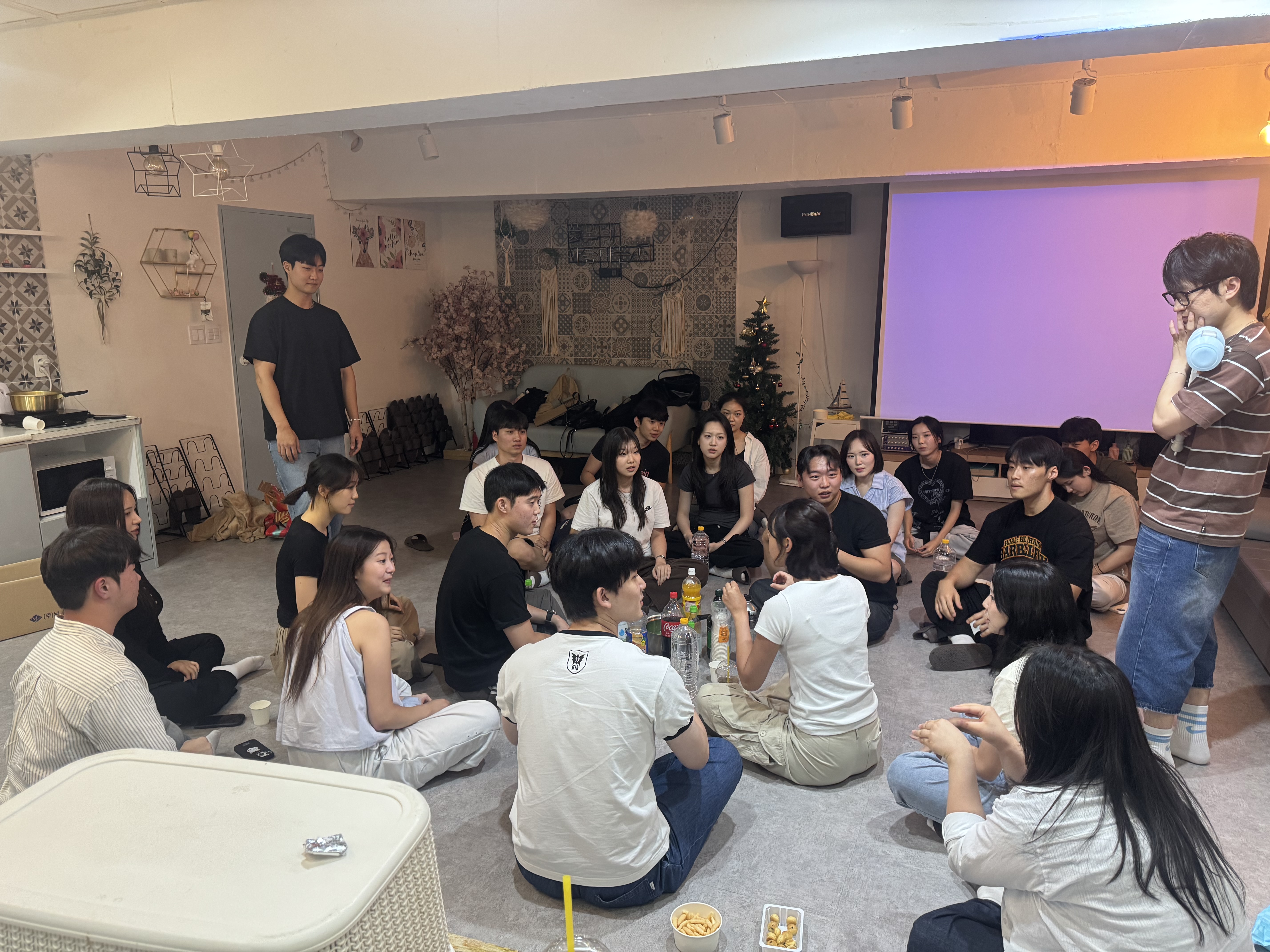 총회를 마친 뒤에는 MT 장소인 대성리로 이동하였습니다. 도착 후 조별로 진행된 아이스브레이킹 게임에서는 이어달리기 빙고, 글자 맞추기, 초성 게임 등 다채로운 프로그램이 마련되었습니다. 임원진들이 준비한 게임을 통해 처음 만난 팀원들도 금세 가까워질 수 있었습니다. 비가 쏟아지는 궂은 날씨였음에도 불구하고, 임원진들이 정성껏 준비한 저녁 식사를 함께하며 즐거운 시간을 보낼 수 있었습니다.