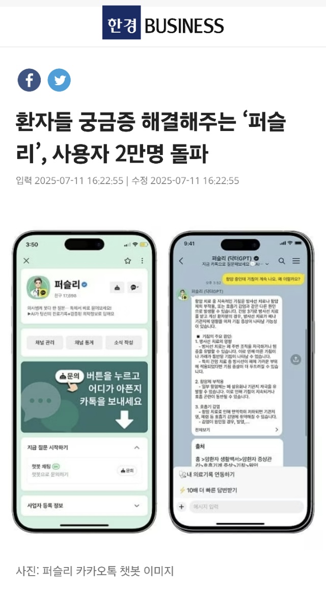 바로 ‘아플 때 쓰는 AI’, 퍼슬리입니다.