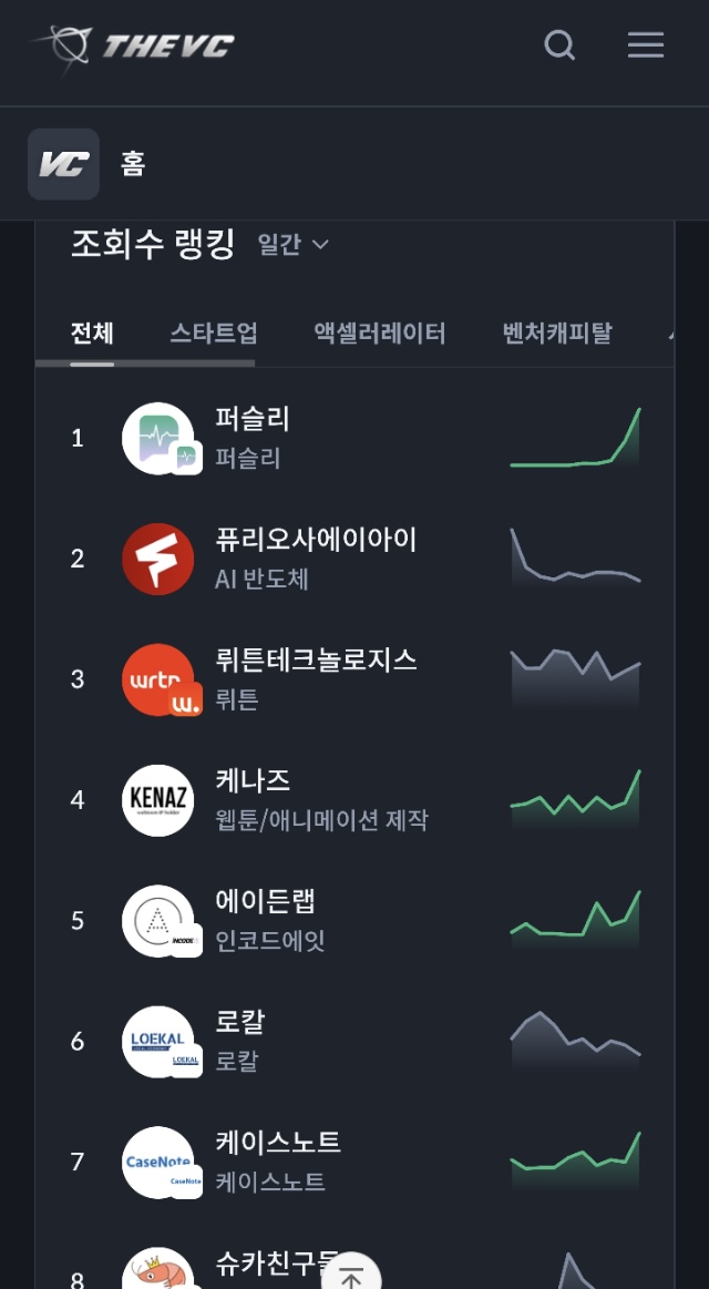 한국 스타트업 투자 데이터베이스 사이트인 THE VC에서 조회수 랭킹 1위를 차지한 퍼슬리 (이미지=더브이씨) |