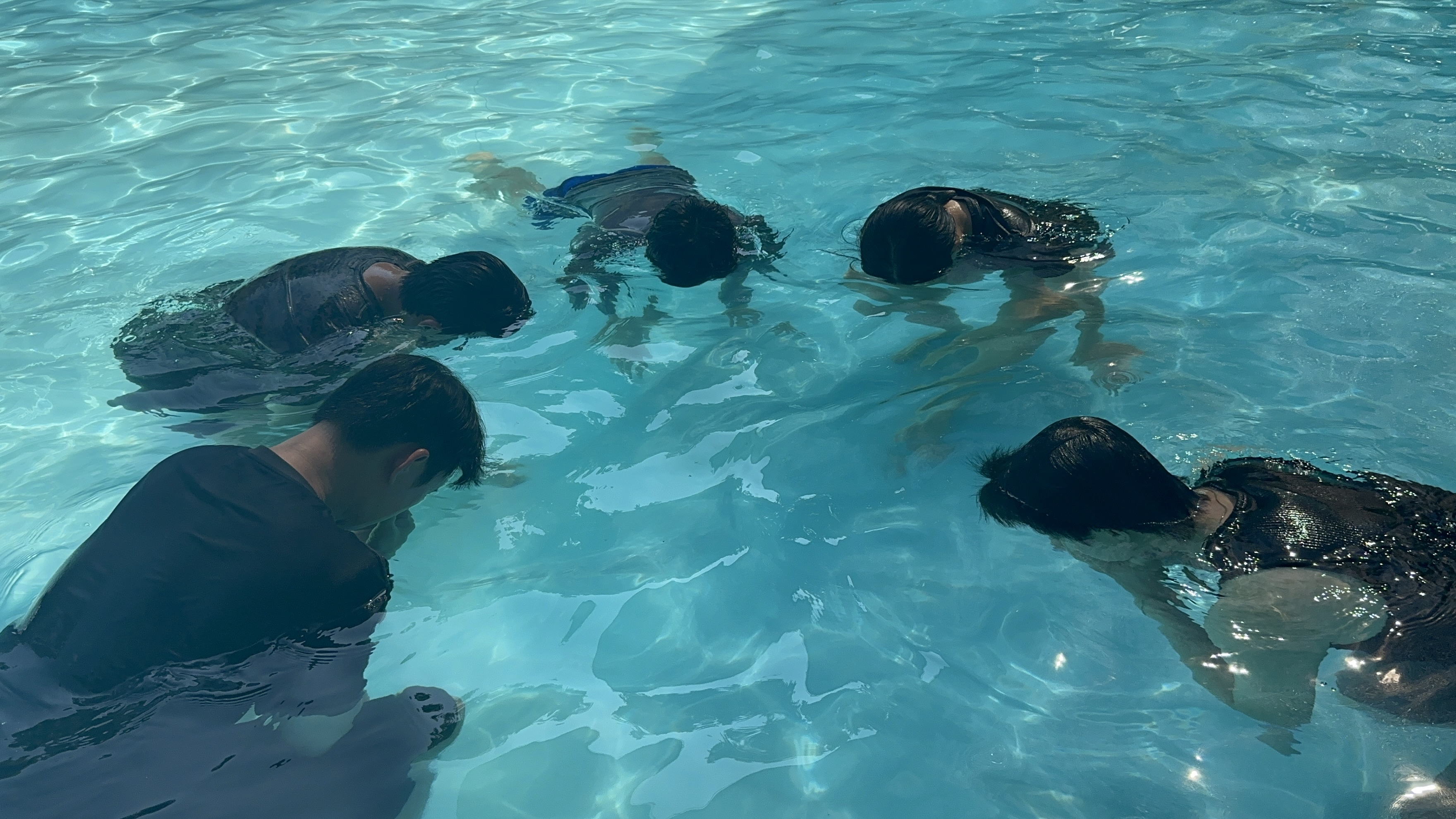 계곡물은 손이 시릴 정도로 차가웠지만, 선배와 후배 할 것 없이 모두가 함께 발을 담그고 늦여름 물놀이를 즐겼습니다. 특히 계곡물 속에서 펼쳐진 2대2 공놀이가 하이라이트였습니다. 서강향영 22기 김상범 선배님과 숙명향영 51기 김수현 선배님 팀, 그리고 고려향영 59기 남궁승재 총단회장과 연세향영 31기 박지강 선배님 팀이 맞붙었는데, 놀랍게도 가장 연장자이신 김상범 선배님과 유일한 여성 참가자인 김수현 선배님 팀이 승리를 거머쥐며 모두에게 반전과 큰 즐거움을 선사했습니다. 누가 더 빨리 수영하는지 내기할 때는, 수영 대신 물속에서 걷는 참가자들의 모습에 모두가 웃음을 터뜨리기도 했습니다. 경기가 끝나자마자 꼴찌를 한 선배님에게 물세례를 퍼붓는 장난기 가득한 모습은 향영인들이 기수를 떠나 한 공동체가 된 모습을 보여주는 장면이었던 것 같습니다. |