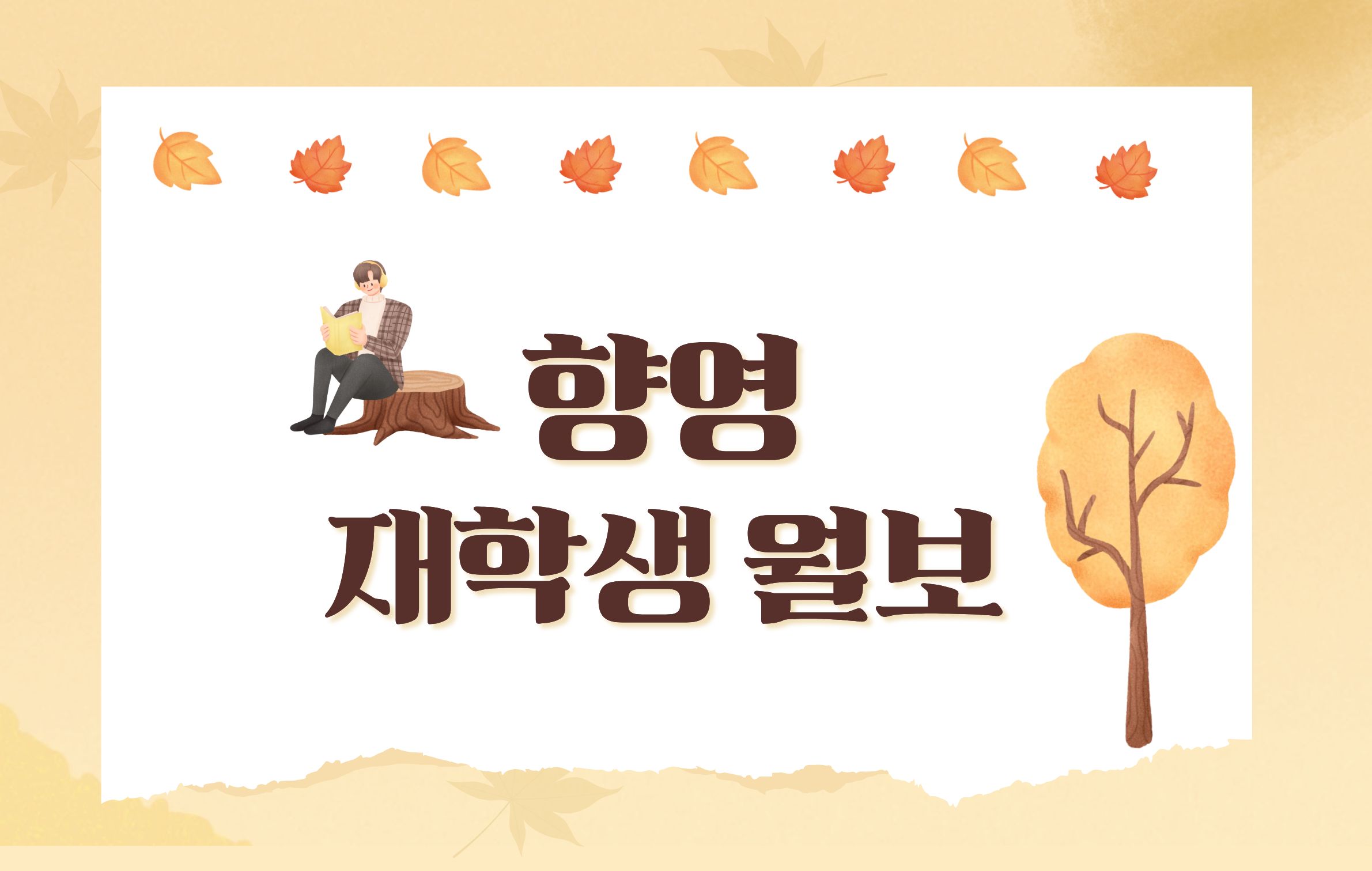 🍂 안녕하세요, 찬 바람이 성큼 다가와 옷깃을 더욱 여미게 되는 10월, 가을의 끝자락에서 월간향영이 인사드립니다. 문득 거리 풍경을 바라보면, 아직은 남아있는 알록달록한 단풍과 두꺼워진 옷차림이 가을과 겨울의 경계에 서 있음을 실감하게 합니다. 이처럼 향영인들 역시 한 해의 결실을 맺고 초겨울의 시작을 준비하는 중요한 시기를 보내고 있을 텐데요. 저희 기자단은 고요하게, 그러나 분주하게 달려온 향영인들의 10월을 차곡차곡 담아왔습니다. 월간 향영을 읽으며 10월의 만추를 만끽하시기를 바라겠습니다.