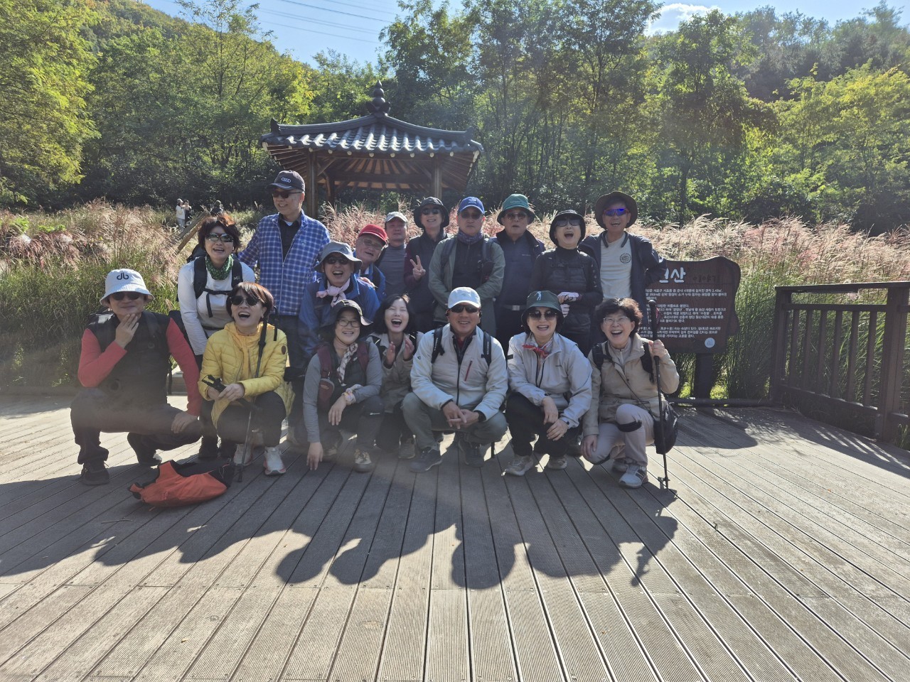 길을 걷다 보면 작은 에피소드도 웃음이 됩니다. 잠시 길을 잘못 들어 앞서 올라가신 선배님들이 다시 합류하시며 “우리 먼저 도착했습니다”라며 웃음을 터뜨리셨고, 그 순간 모두가 함께 웃었습니다. 이런 소소한 일화들이 이날 산행의 따뜻한 분위기를 더했습니다.